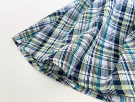とても軽い着心地で涼しく暑い夏にはぴったりな素材です。 またシワになりにくく扱いやすい生地です。 生地の厚さは夏用の一般的な綿素材ですが 透け感がありますのでインナーは必須になります。 薄手綿素材のペチコートをおつけいたします。 お色は紺や黄色、グリーンなどのとても綺麗な マドラスチェックです。