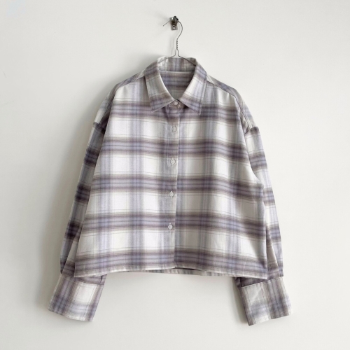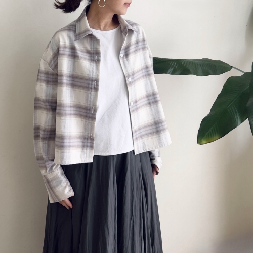 シンプルなショート丈のボタンブラウスです。