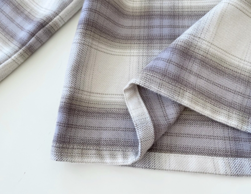 ■色 オフホワイト、淡いラベンダー、ベージュのチェック柄で優しい雰囲気の色柄です。